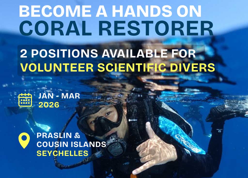 1. Volunteering and Training in Coral Reef Restoration in Seychelles (3 months) 2 Positions Available